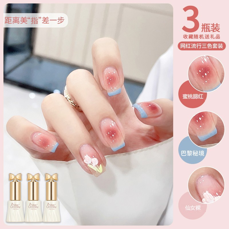 2025年新款指甲油胶冰透裸色腮红爆闪三色显白百搭美甲店专用套装