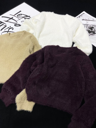 显瘦仿水貂绒长袖短毛衣毛绒绒