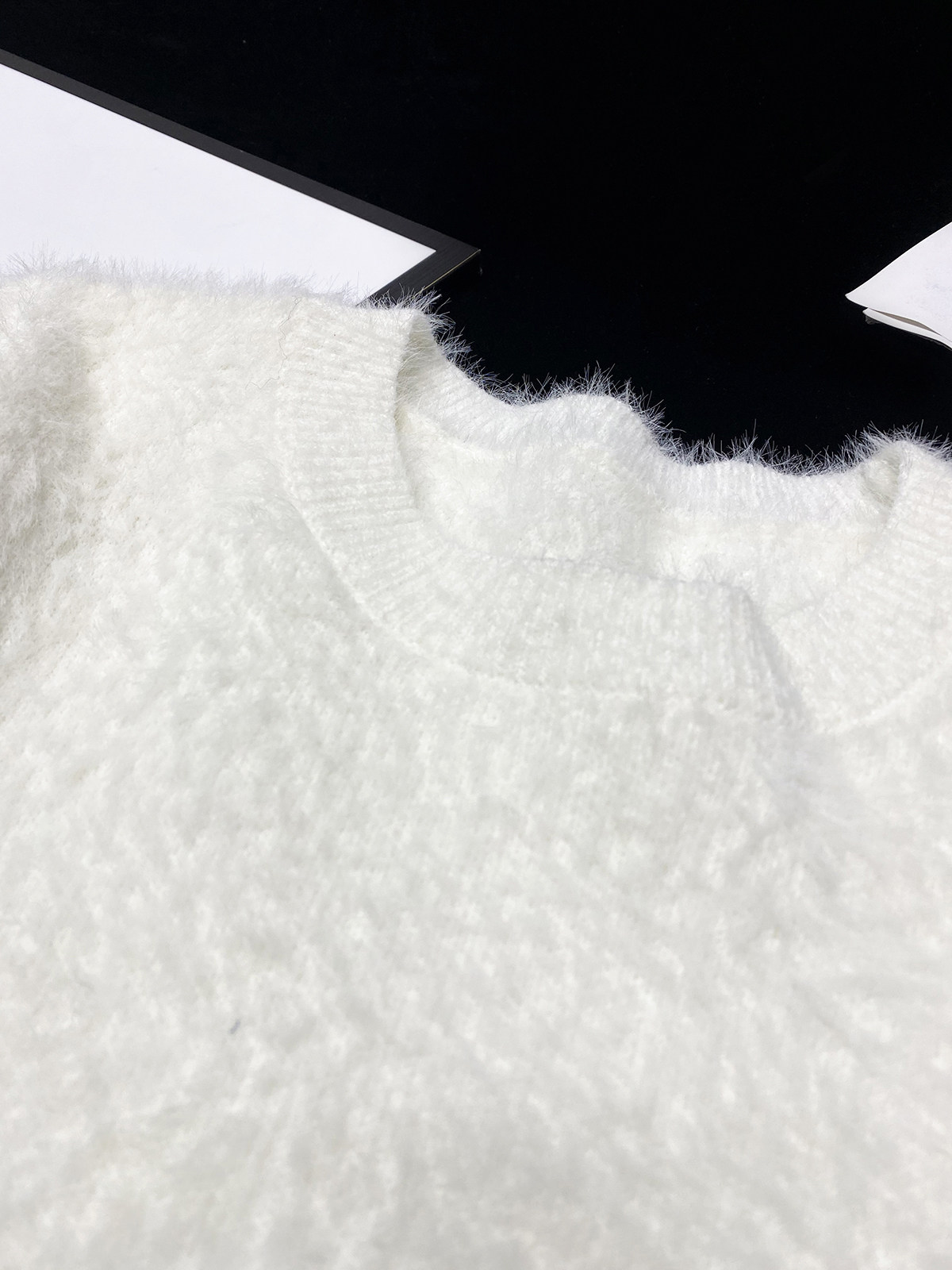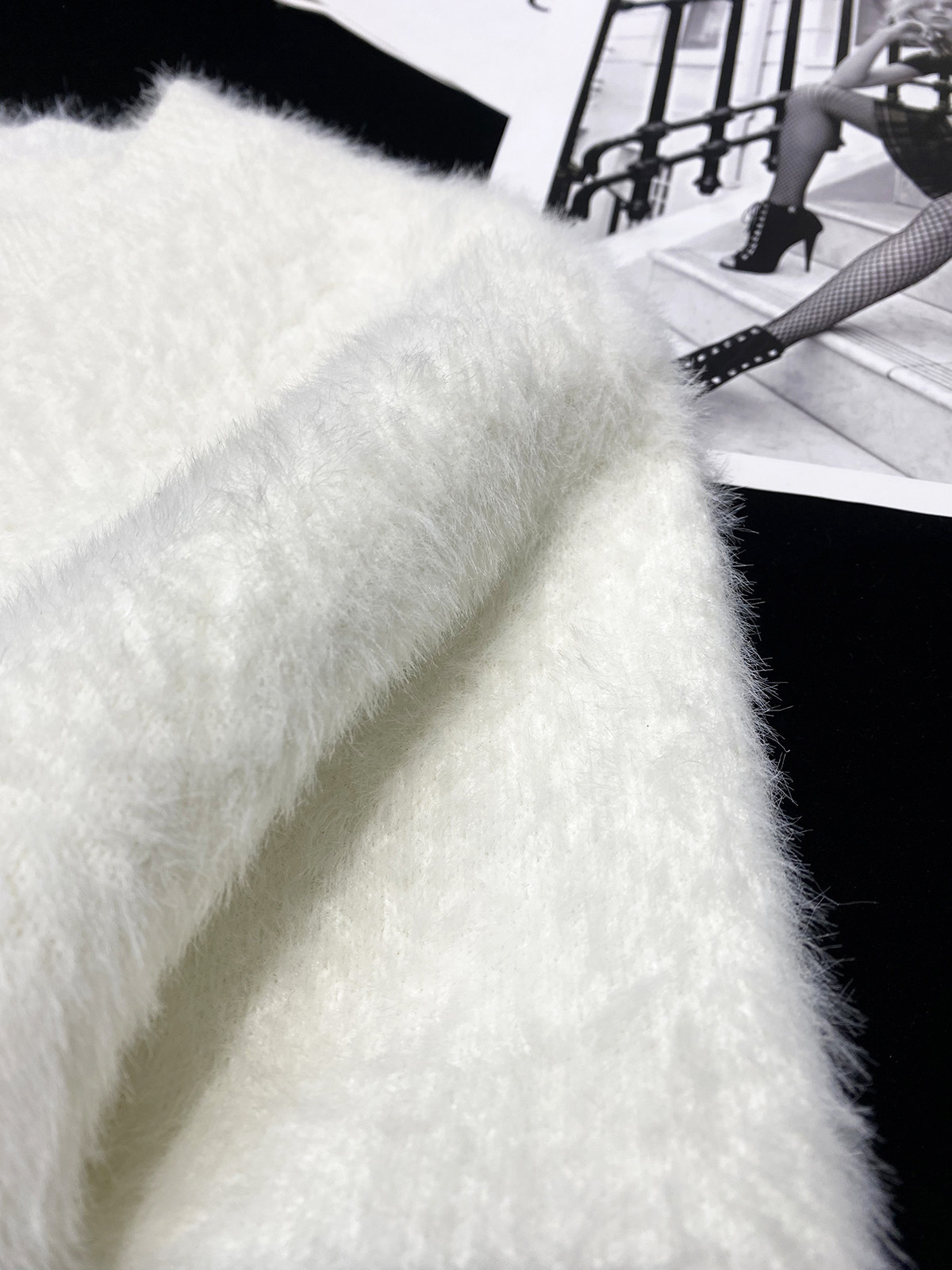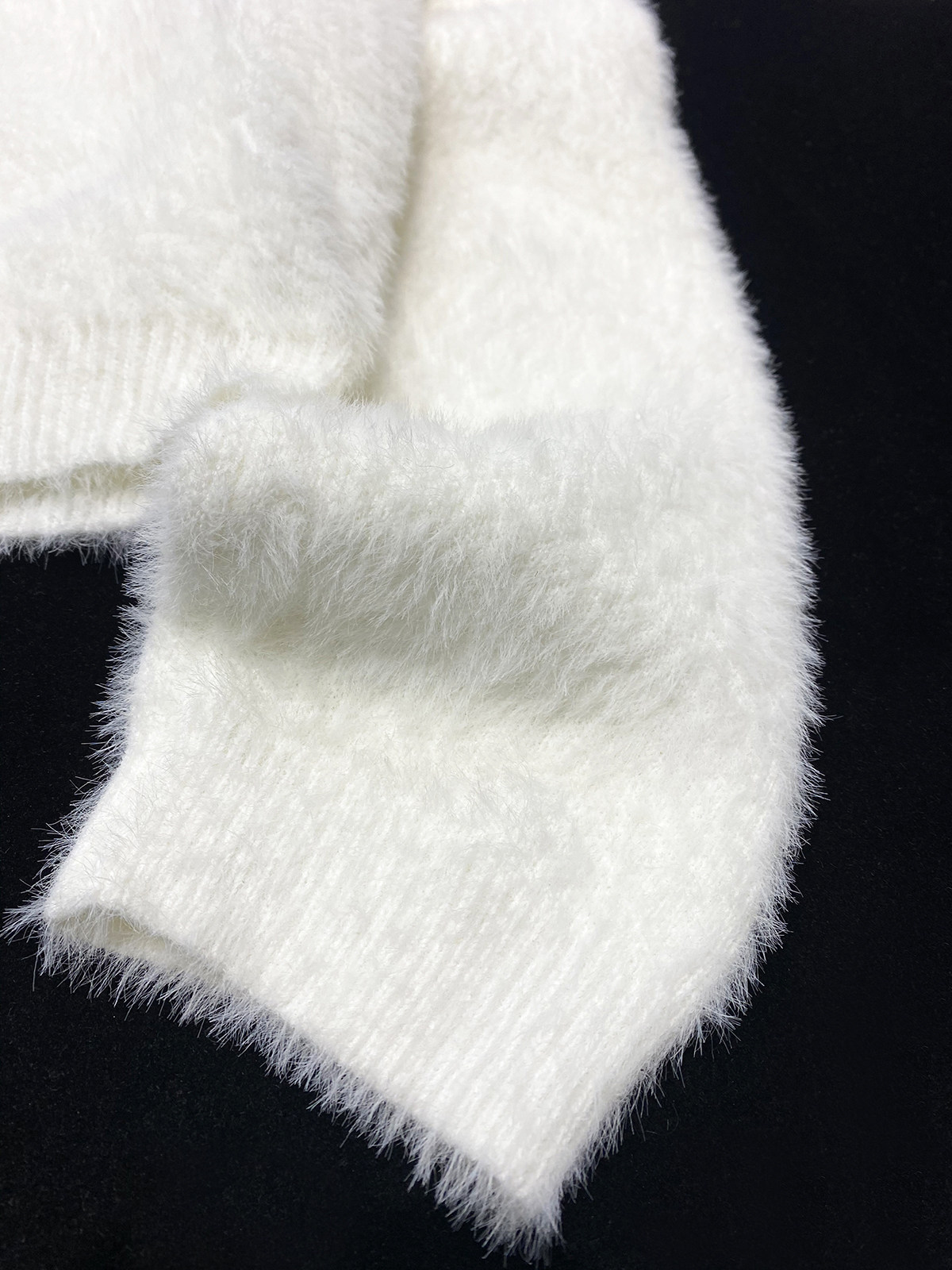 CCA白色仿貂绒短款套头毛衣秋冬毛绒打底衫显瘦毛毛针织衫上衣女
