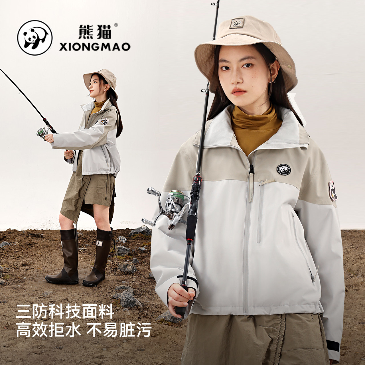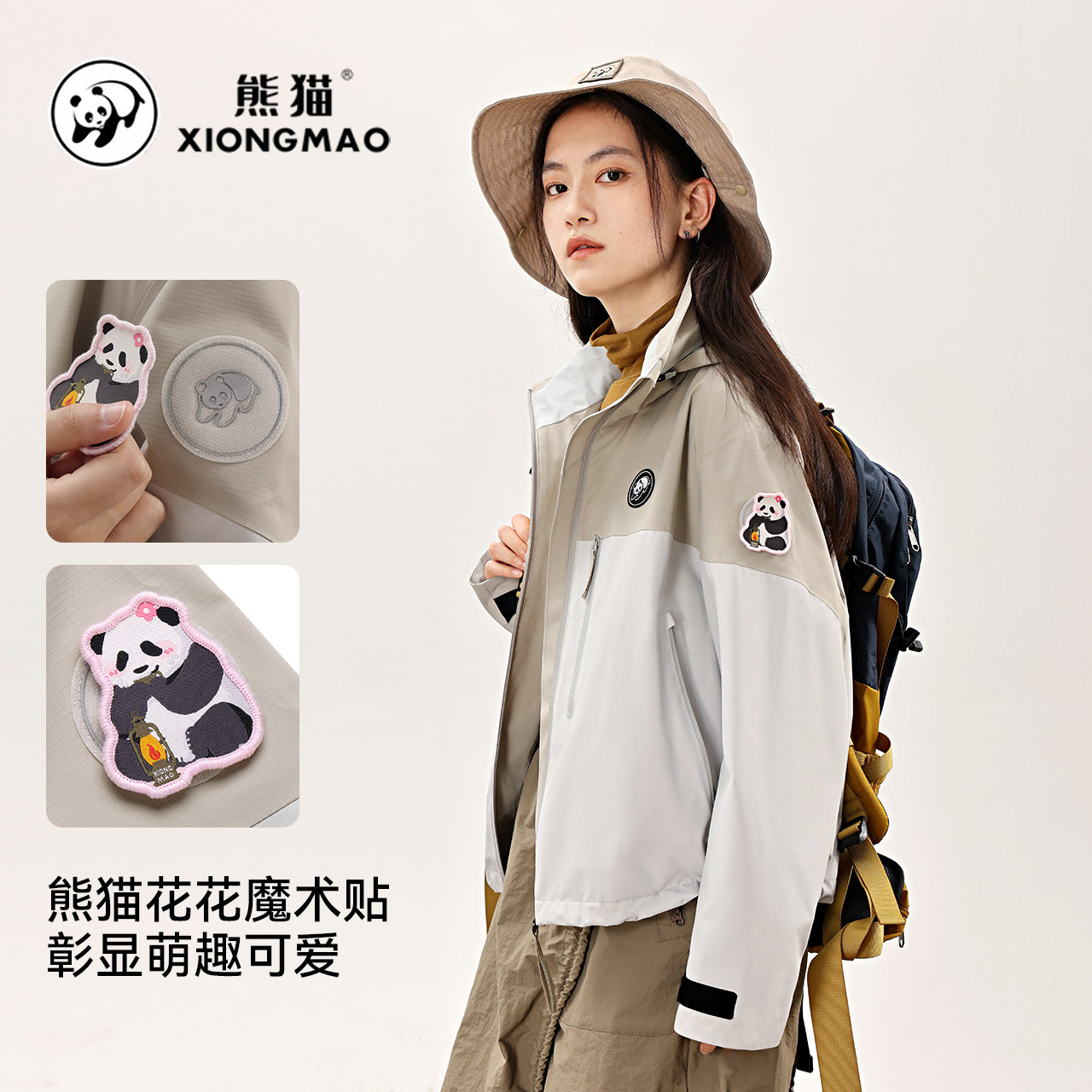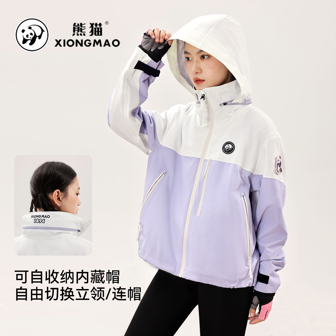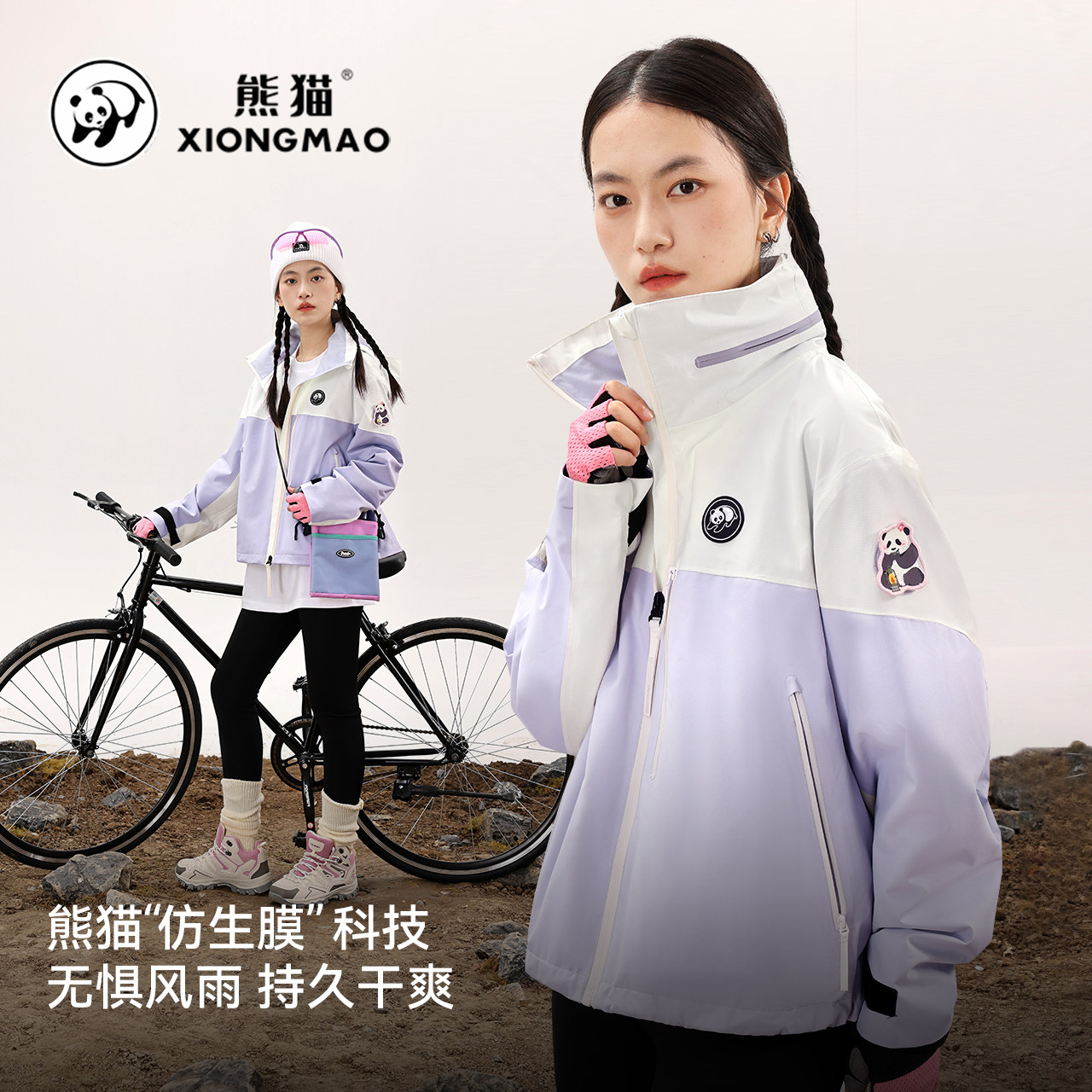 熊猫联名骆驼户外冲锋衣女男款秋季2025年骑行防水防风登山服外套