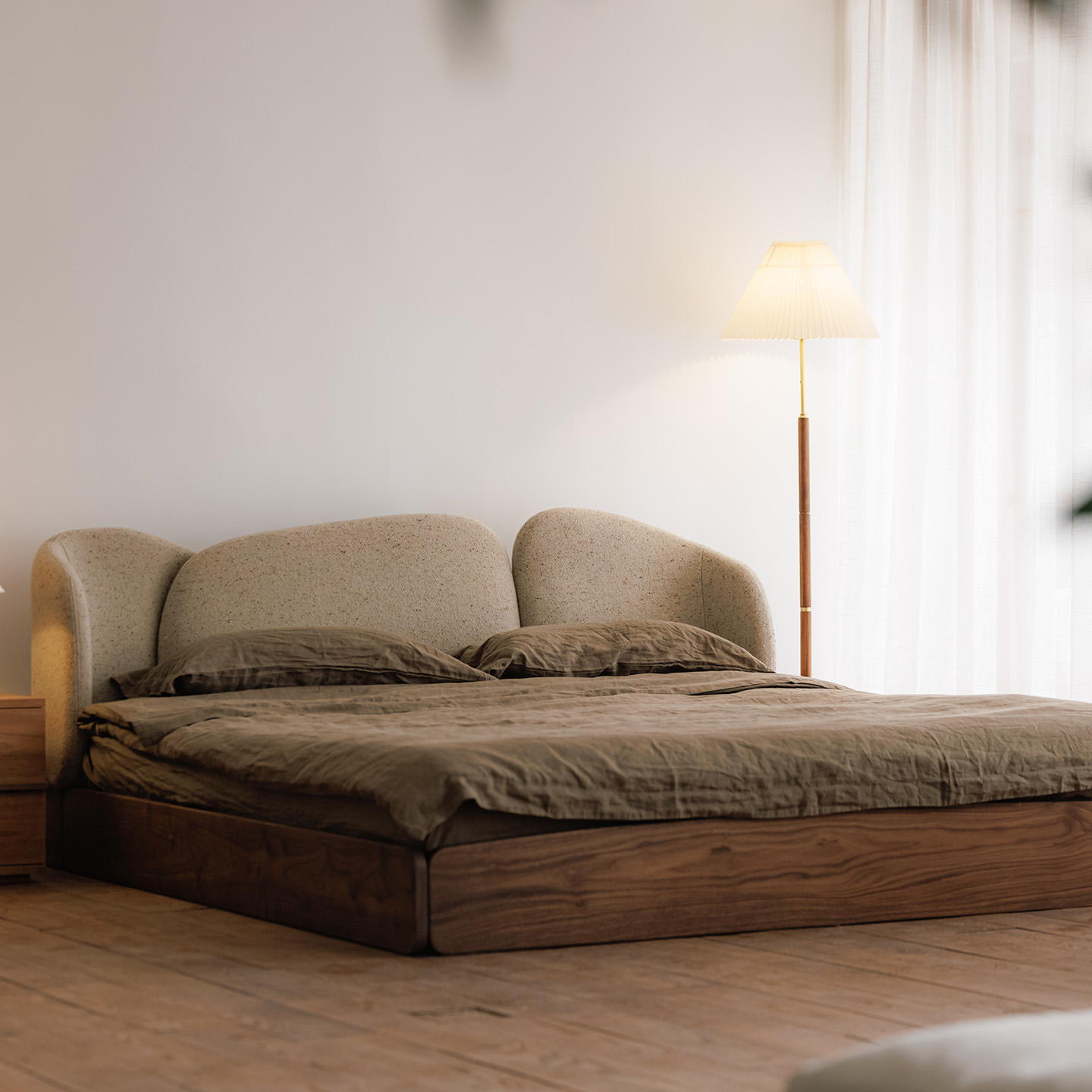 以山实木床 樱桃木实木床黑胡桃双人床1.8米床原木日式侘寂风软包