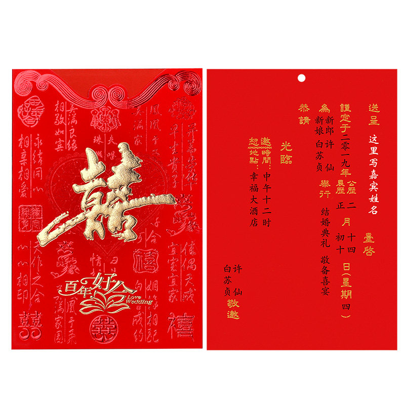 请帖结婚请柬中国风婚礼2021喜帖邀请函中式婚庆用品网红定制打印