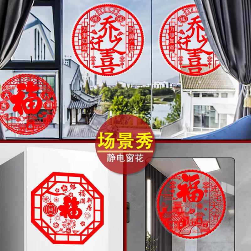 乔迁之喜装饰静电贴窗花玻璃贴新年兔年春节新居入宅福字门贴植绒