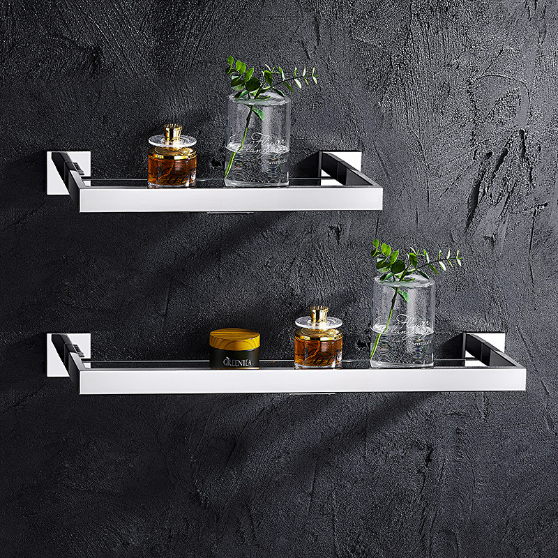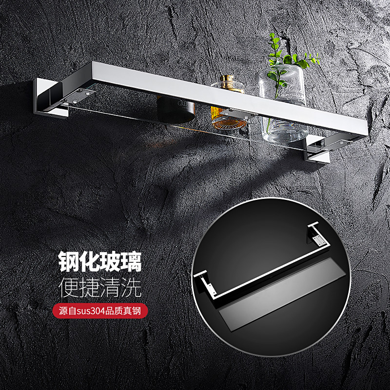 卫生间玻璃置物架304不锈钢浴室墙上壁挂洗漱台化妆品免打孔镜前