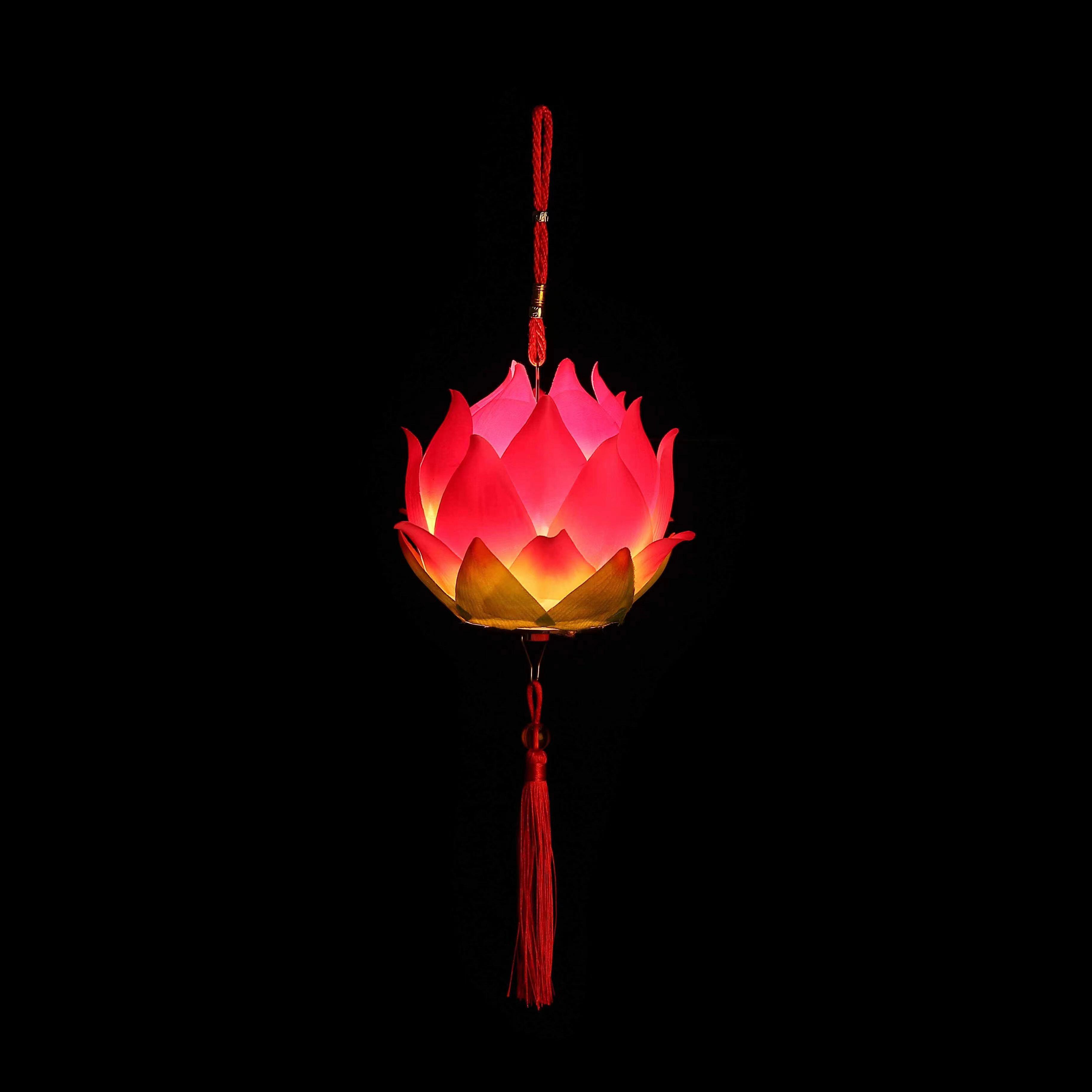 元旦春节儿童手提莲花灯笼古风汉服手持发光荷花灯发光装饰小灯笼