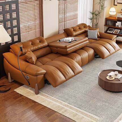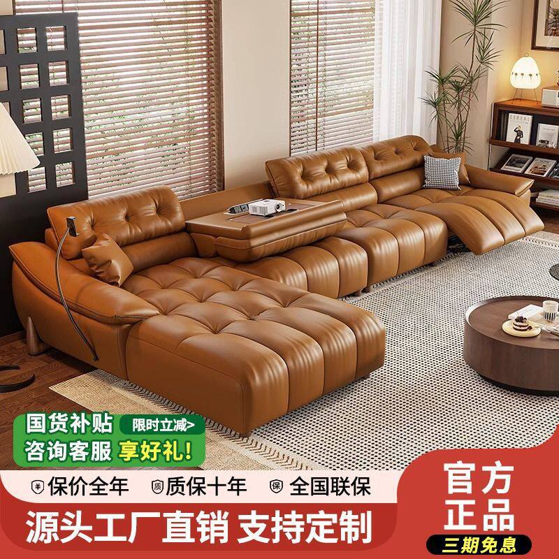 中古风沙发电动多功能头层真皮客厅奶油风法式转角贵妃太空头等舱