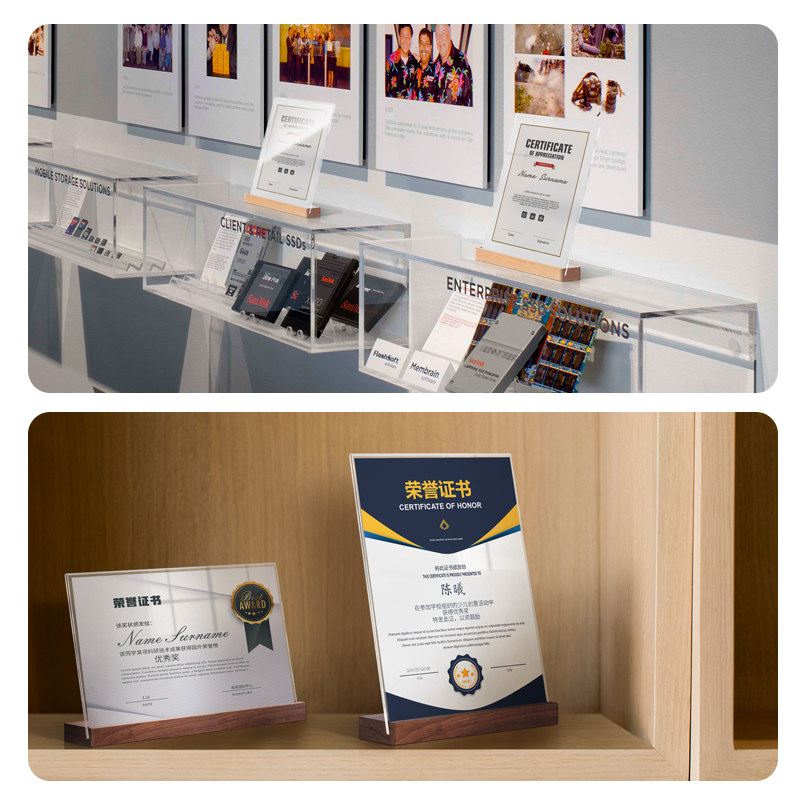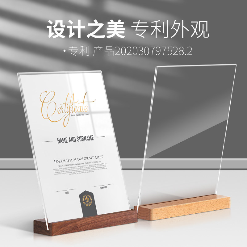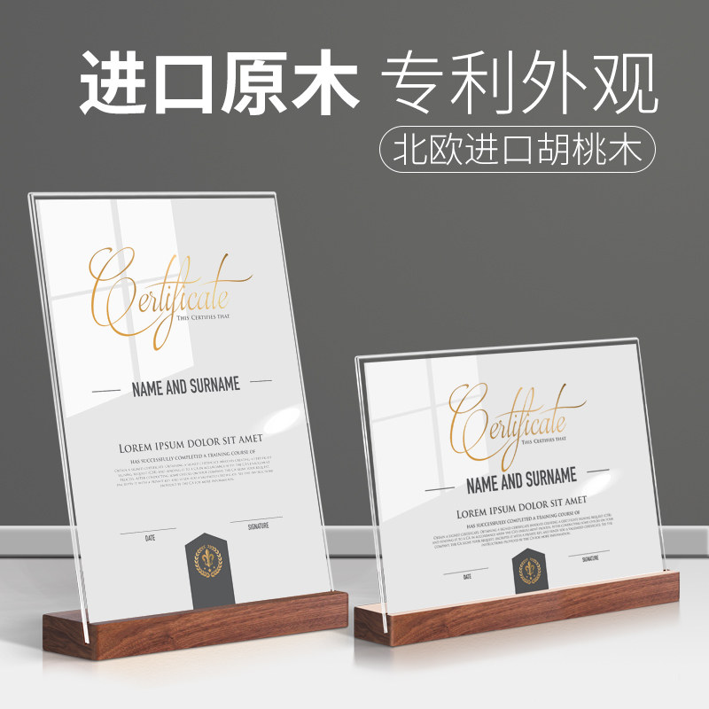 荣誉证书框奖状展示授权证书专利裱框架亚克力A4实木玻璃相框摆台