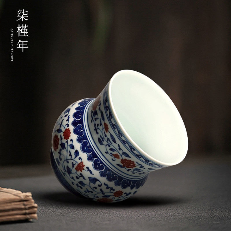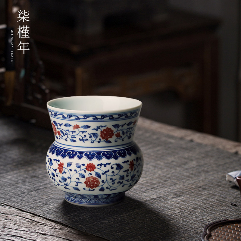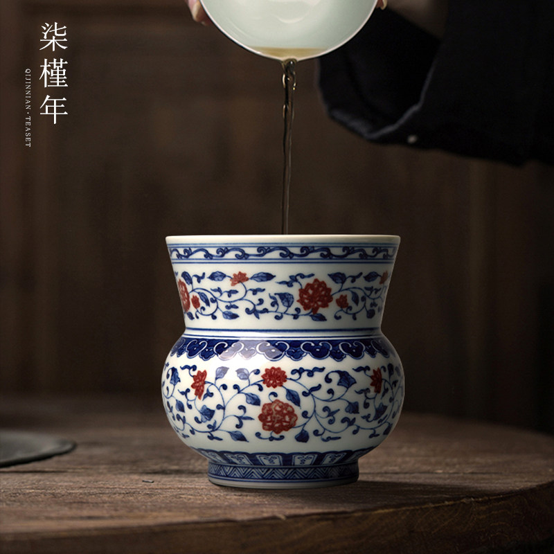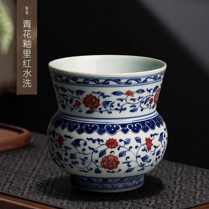 柒槿年青花釉里红茶洗水洗茶渣缸