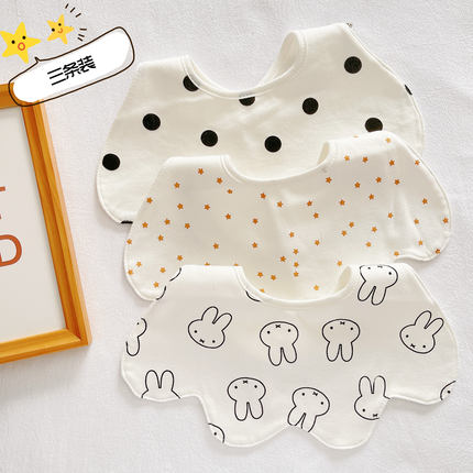 3条装防水款纯棉婴儿薄口水巾花瓣围兜宝宝可爱围嘴新生儿防吐奶