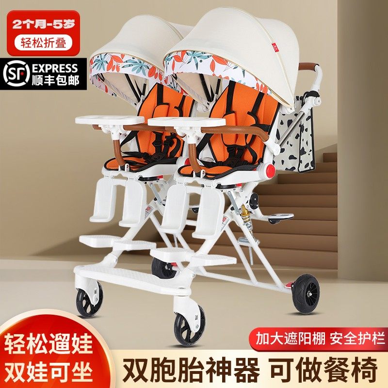 双胞胎溜娃神器大小宝宝可坐可平躺二胎婴儿折叠双人手推车遛娃车