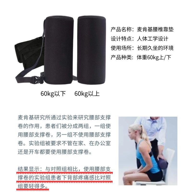 麦肯基腰部支撑卷人体工学久坐护腰靠垫腰椎间盘突出开车办公腰枕