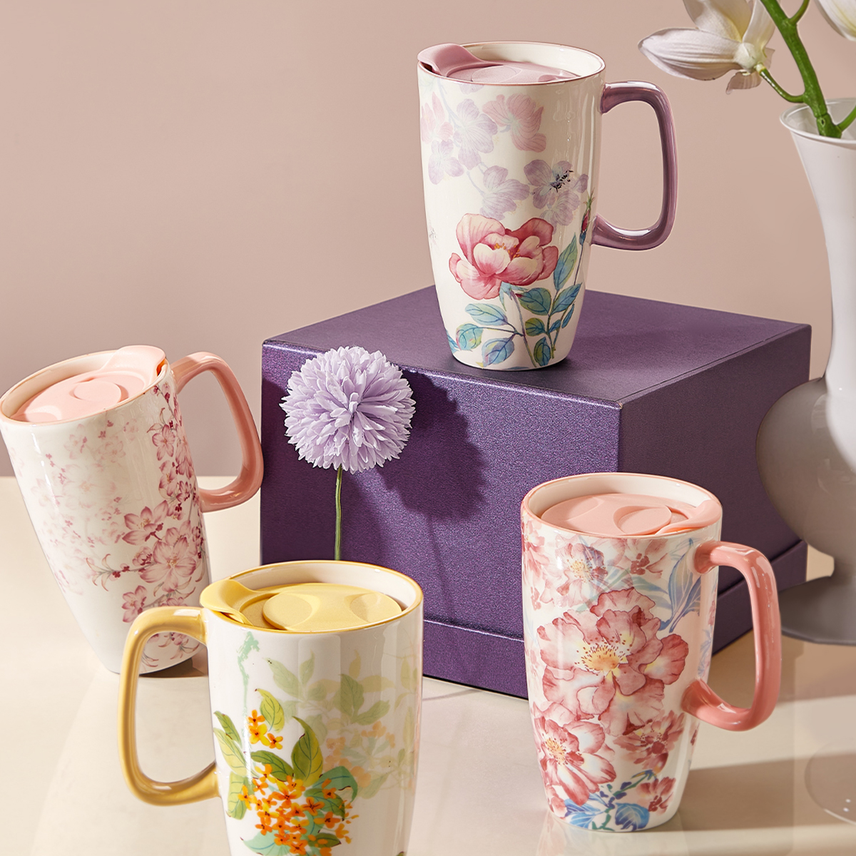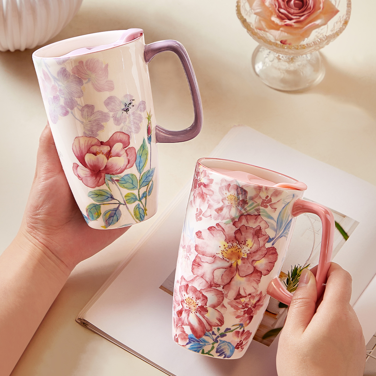 绝美马克杯大容量陶瓷杯带盖家用