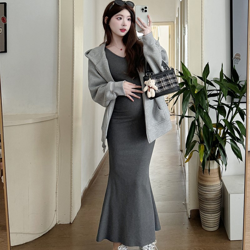 孕妇装秋冬装2024新款卫衣连衣裙大F码鱼尾裙外套两件套秋冬季套