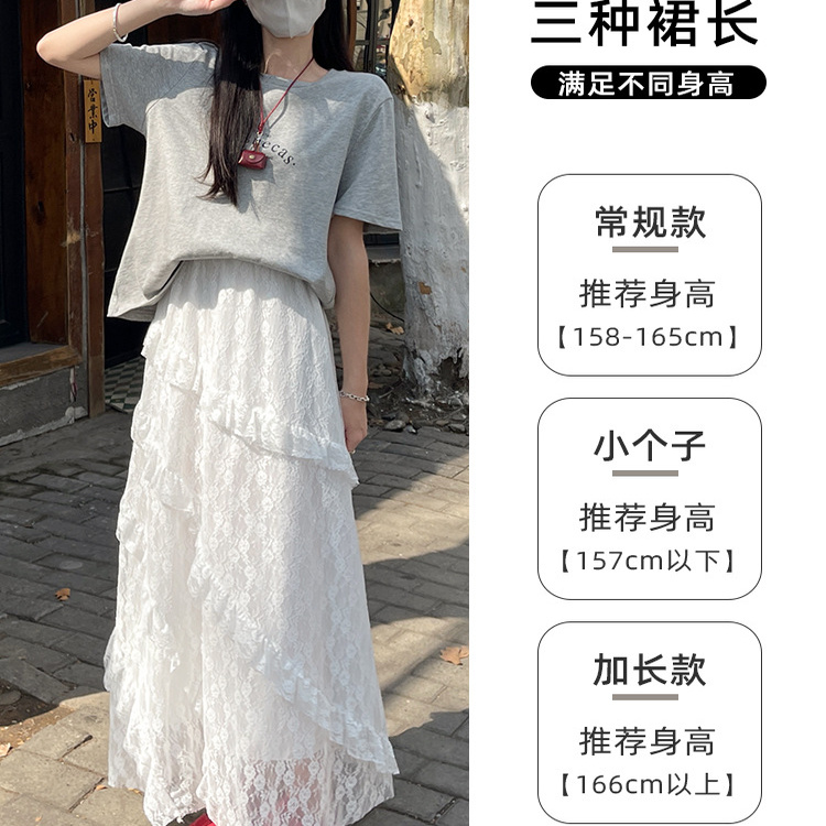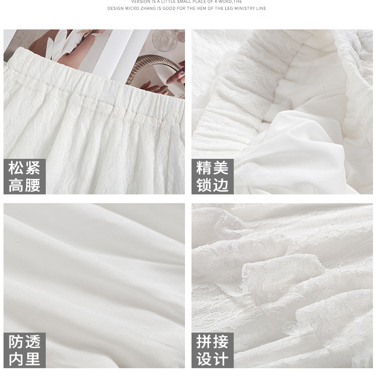 千朔不规则蕾丝白色半身裙春夏季新款蛋糕裙小众仙女中长款长裙子
