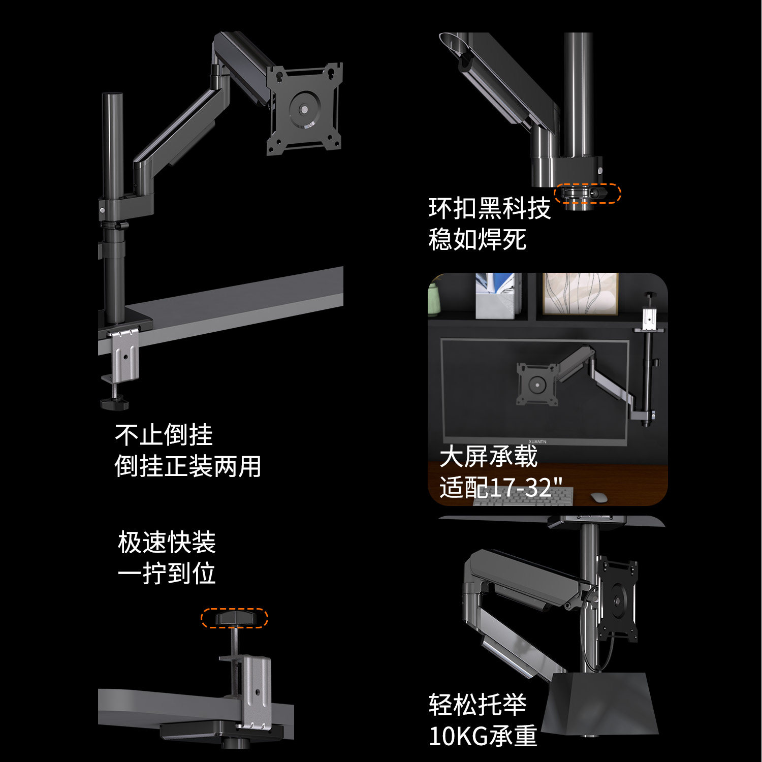 显示器支架学生宿舍倒挂装屏幕支撑架台式电脑升降架机械臂横竖屏360度旋转适用华硕创维飞利浦雷神电竞雷鸟