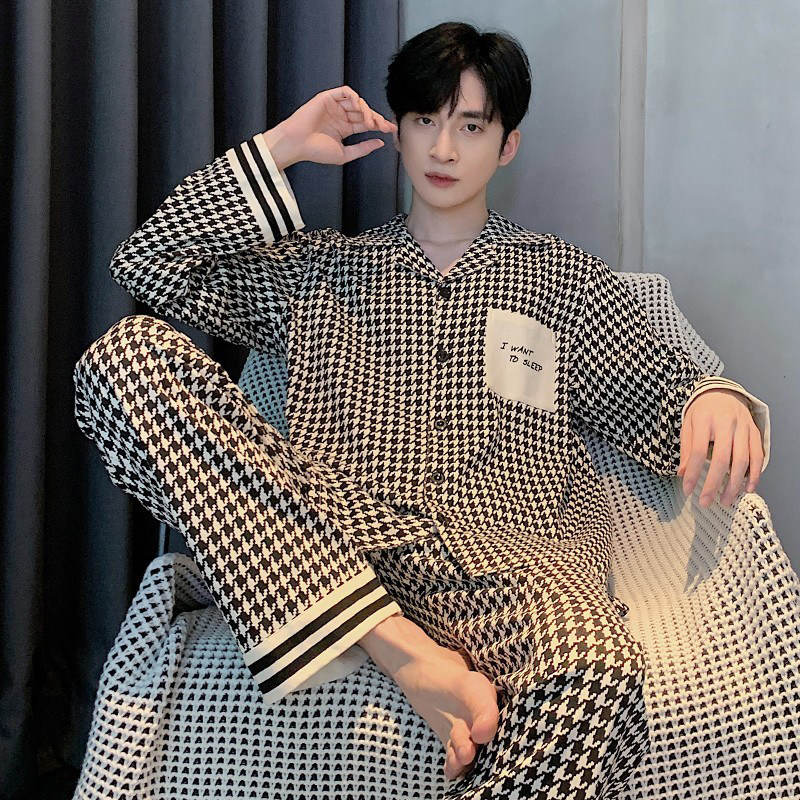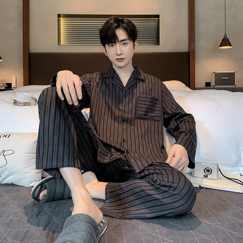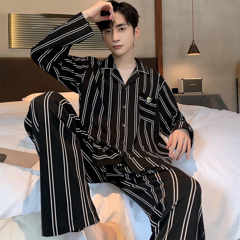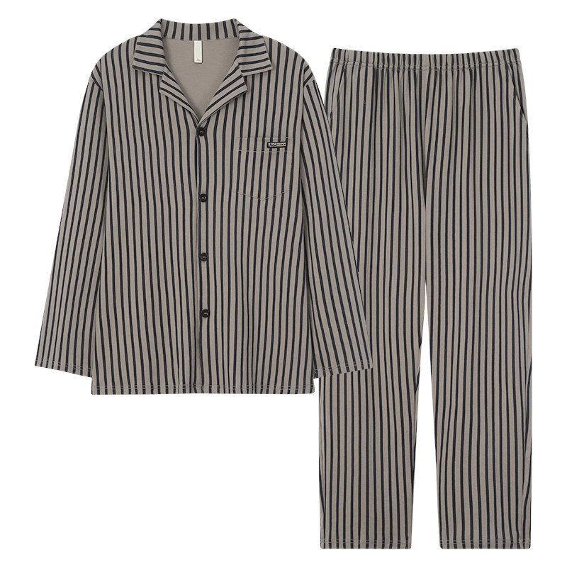 猫人男士睡衣春秋款纯棉薄款条纹长袖2025新款全棉亲肤宽松家居服