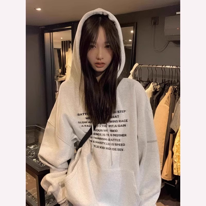美式复古潮牌连帽卫衣女春秋oversize薄款外套宽松慵懒风帽衫上衣