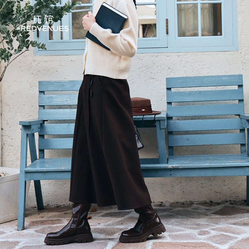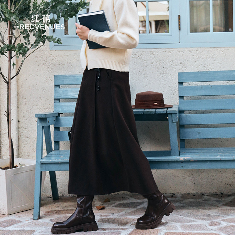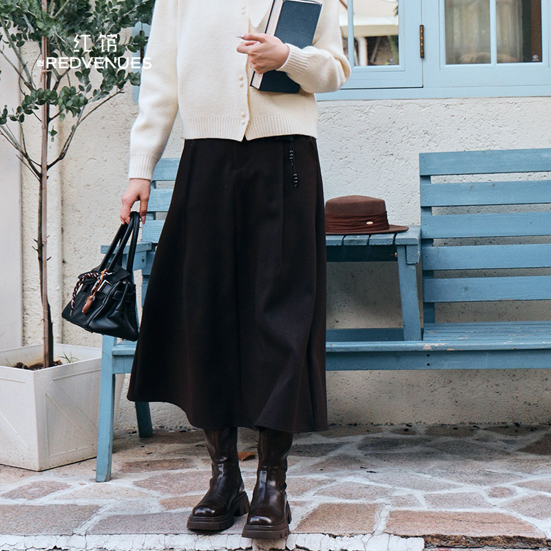 红馆25冬季新款半身裙美拉德穿搭棕色中长裙高腰A字裙鱼尾裙伞裙