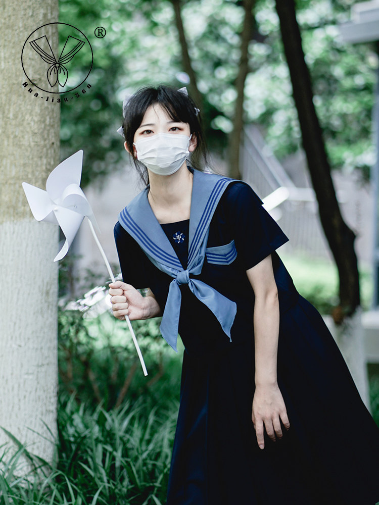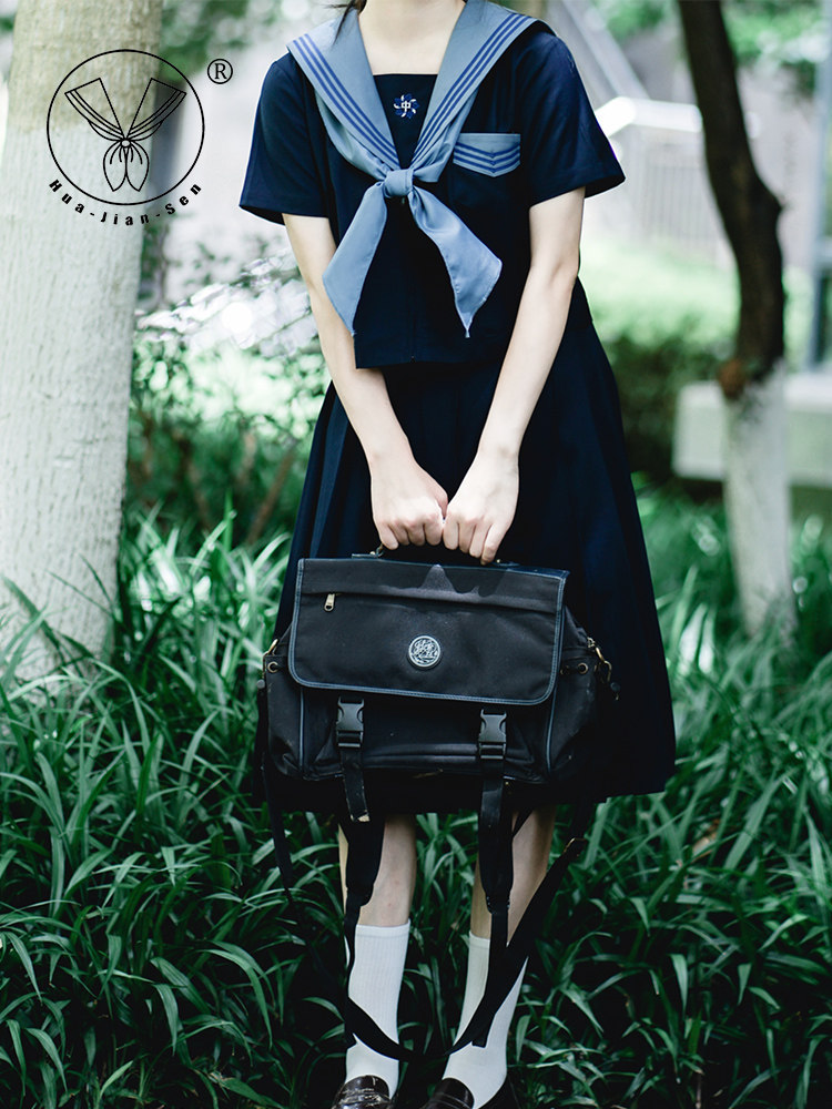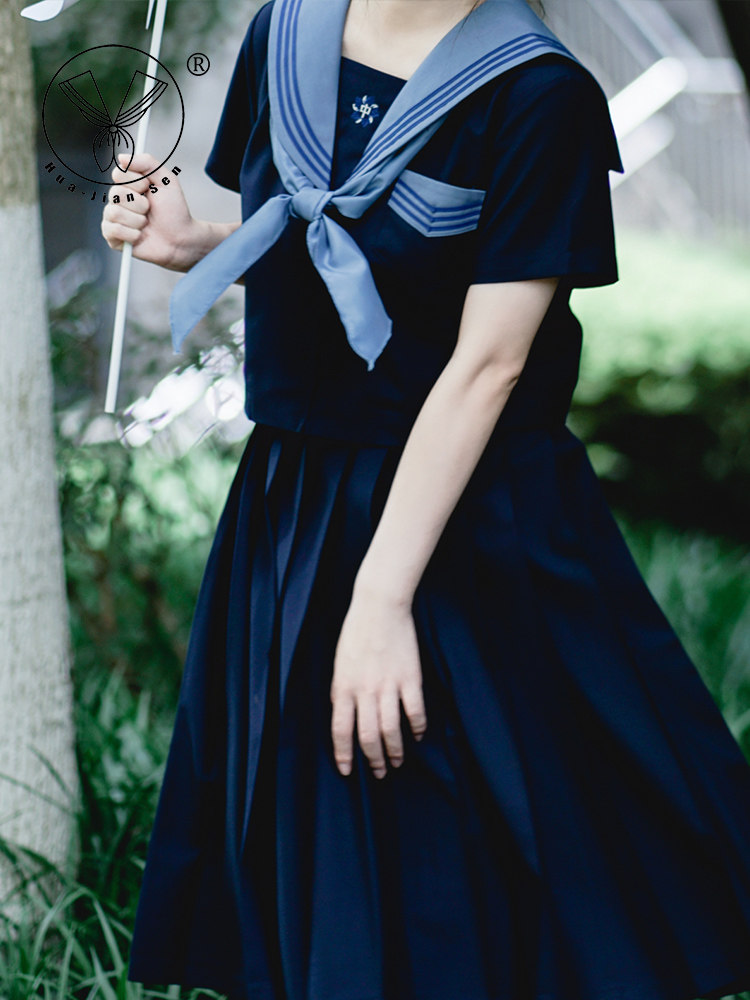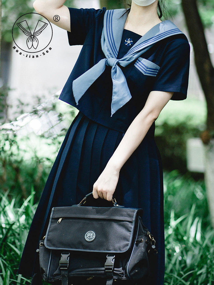 清仓 【泉铃中】浓绀色三本正统JK制服校供感中间服领巾水手服