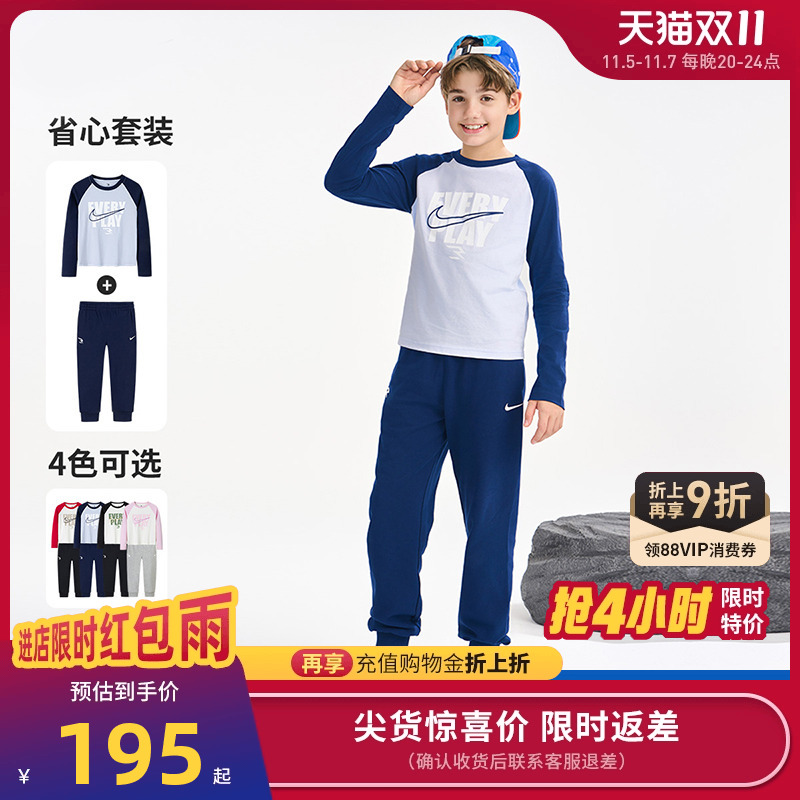 Nike 3brand童装男女童T恤长裤2件套纯棉儿童套装长袖裤子春装潮