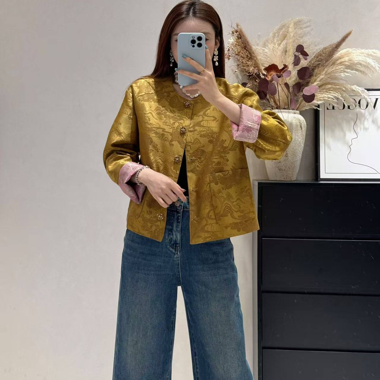 欧货新中式国风缎面外套女淳秋季高级感提花刺绣唐装上衣时髦气质