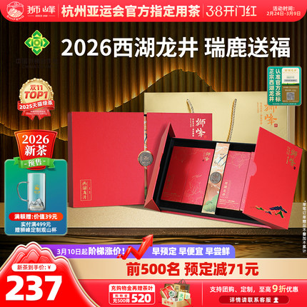 2026新茶预售狮峰牌西湖龙井茶叶礼盒装明前特级瑞鹿春绿茶叶送礼