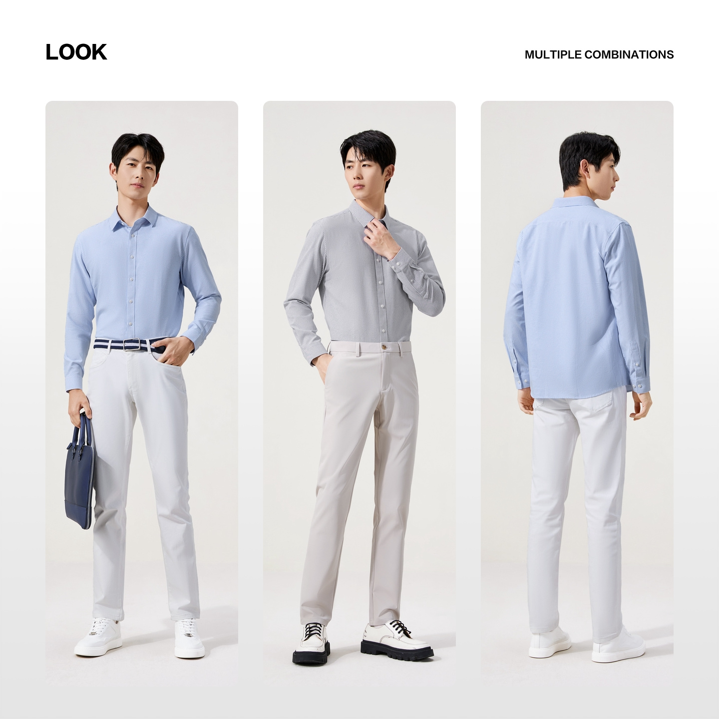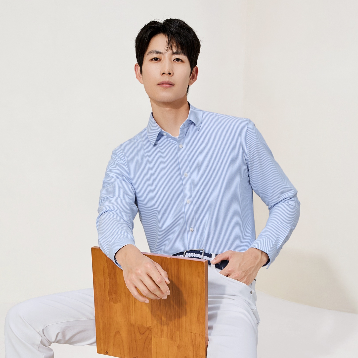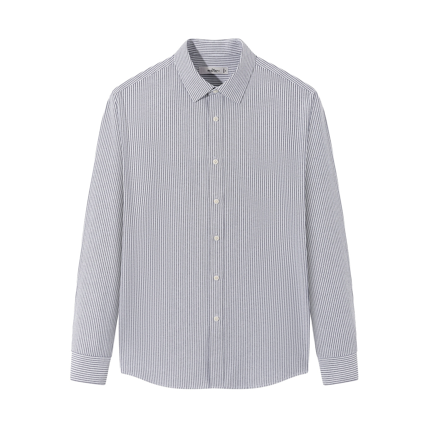 【牛津纺条纹】柒牌男装长袖衬衫休闲商务秋季无缝胶条通勤衬衣