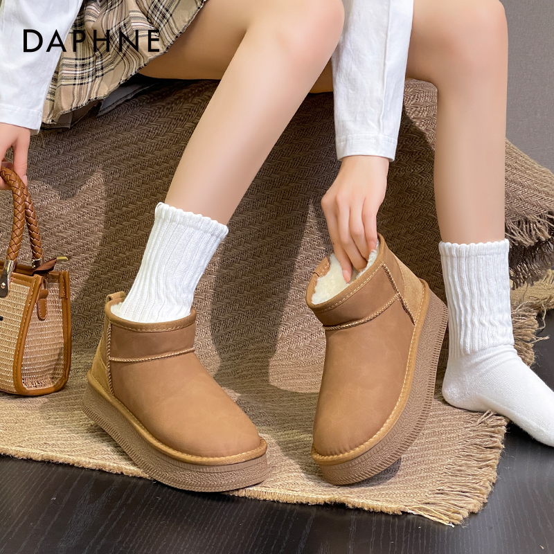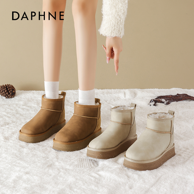 达芙妮厚底内增高雪地靴女冬