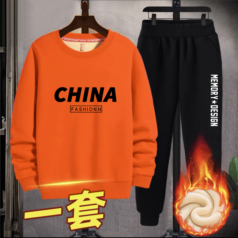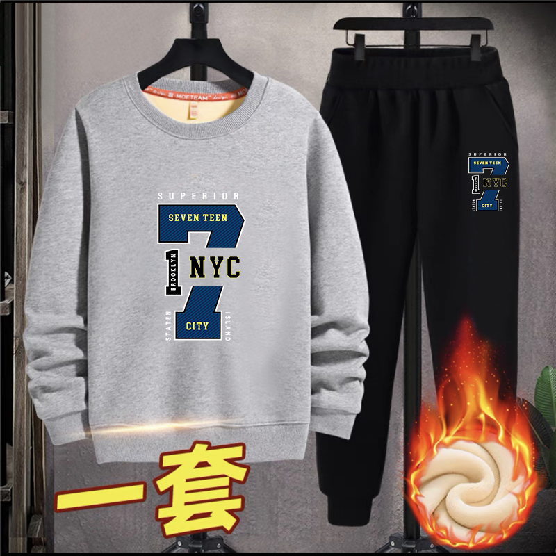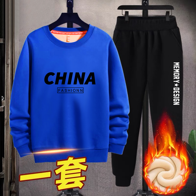 男童加绒套装2024新款加厚秋冬运动大童保暖冬装卫衣儿童童装衣服