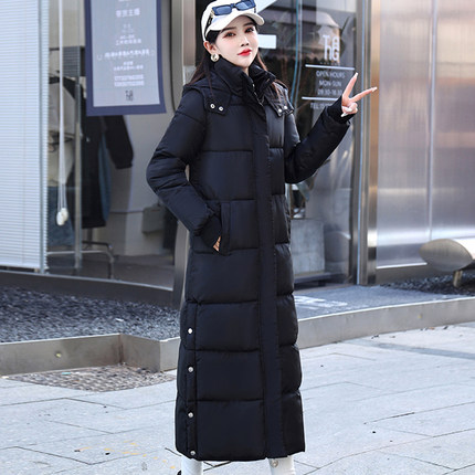 新款棉服女长款过膝到脚踝修身棉袄加厚冬季外套韩版加长款棉衣女