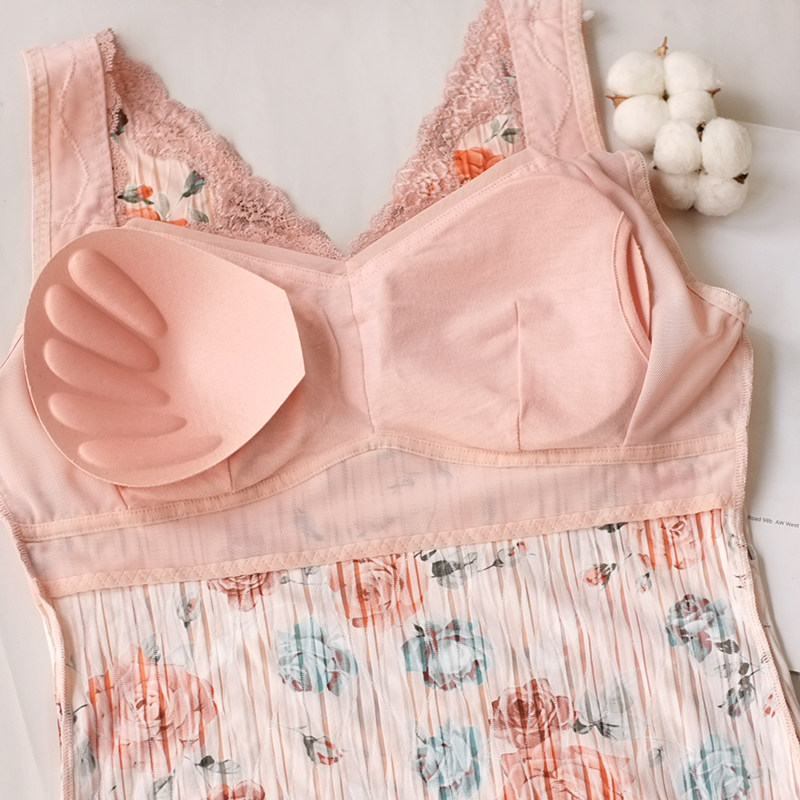印花背心式全罩杯保暖吊带内衣