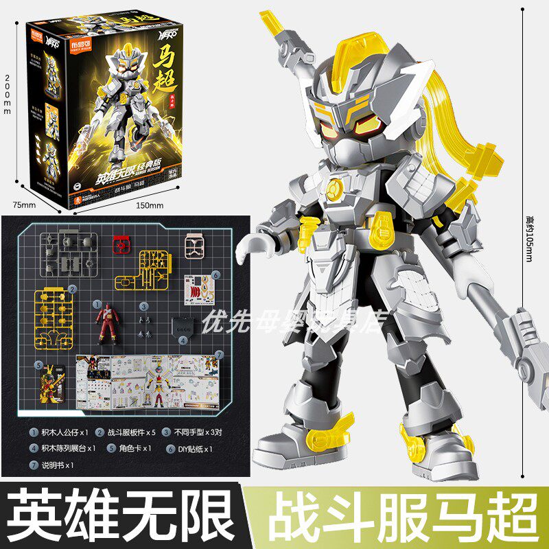 布鲁可英雄无限积木人吕布马超拼装手办布鲁克刘备关羽手办玩具男