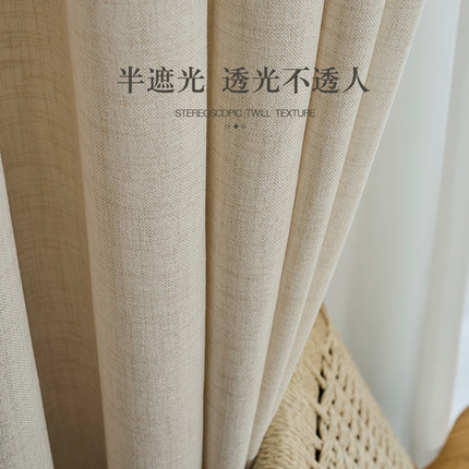 法式复古日式亚麻窗帘遮光奶油色透光不透人客厅阳台衣柜防尘纱帘