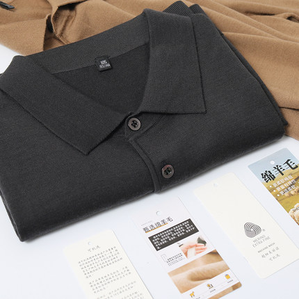 可机洗羊毛衫男100%纯羊毛Polo领打底毛衣薄款精纺美丽诺针织翻领