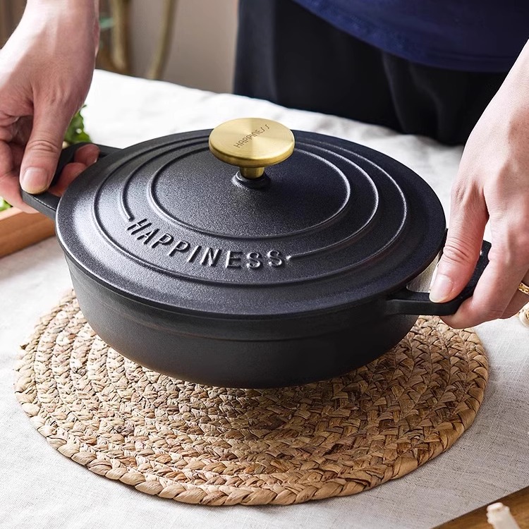 小幸福珐琅锅铸铁锅焖焗锅家用多功能炖锅海鲜锅煲汤锅电磁炉23cm