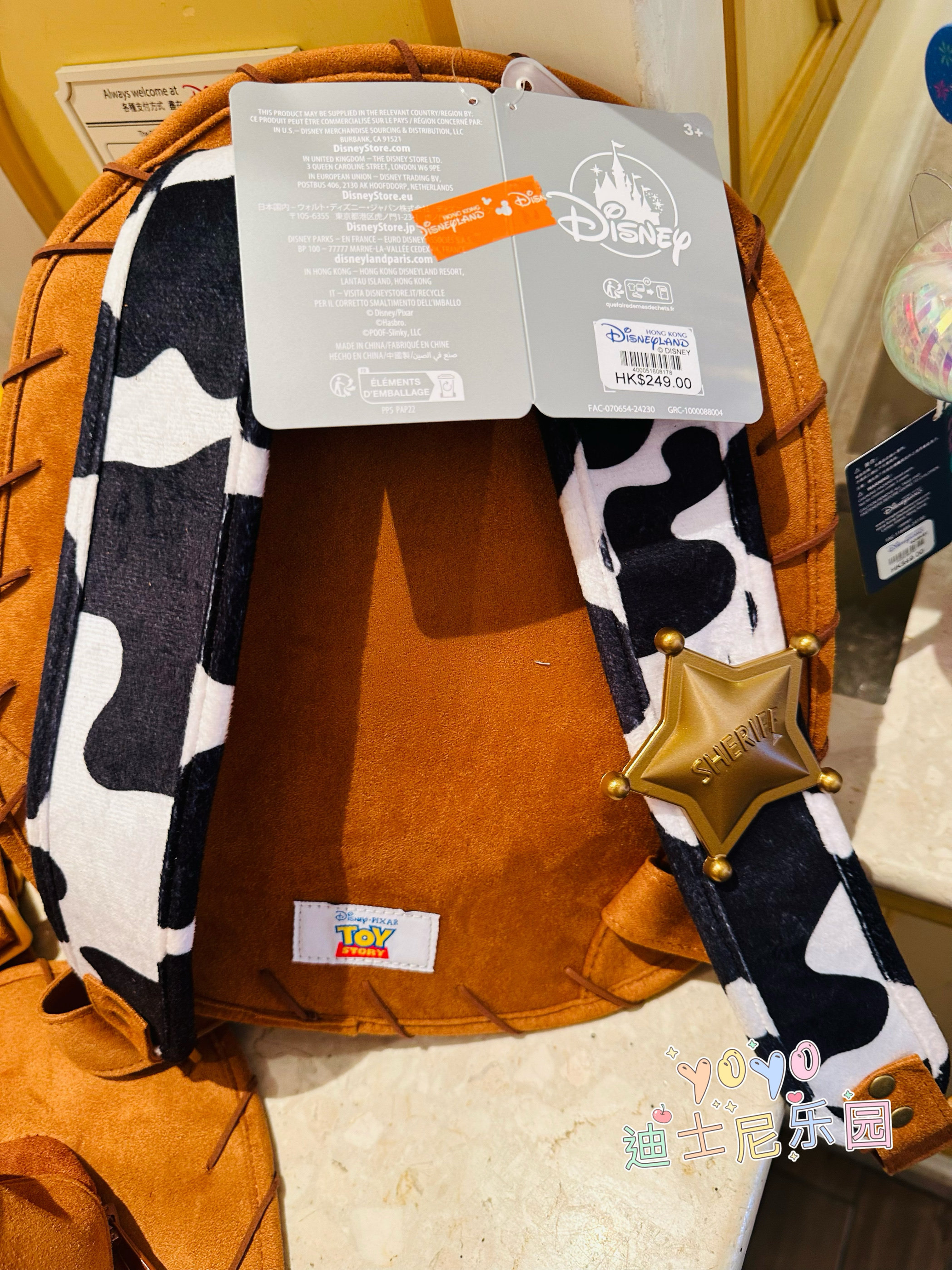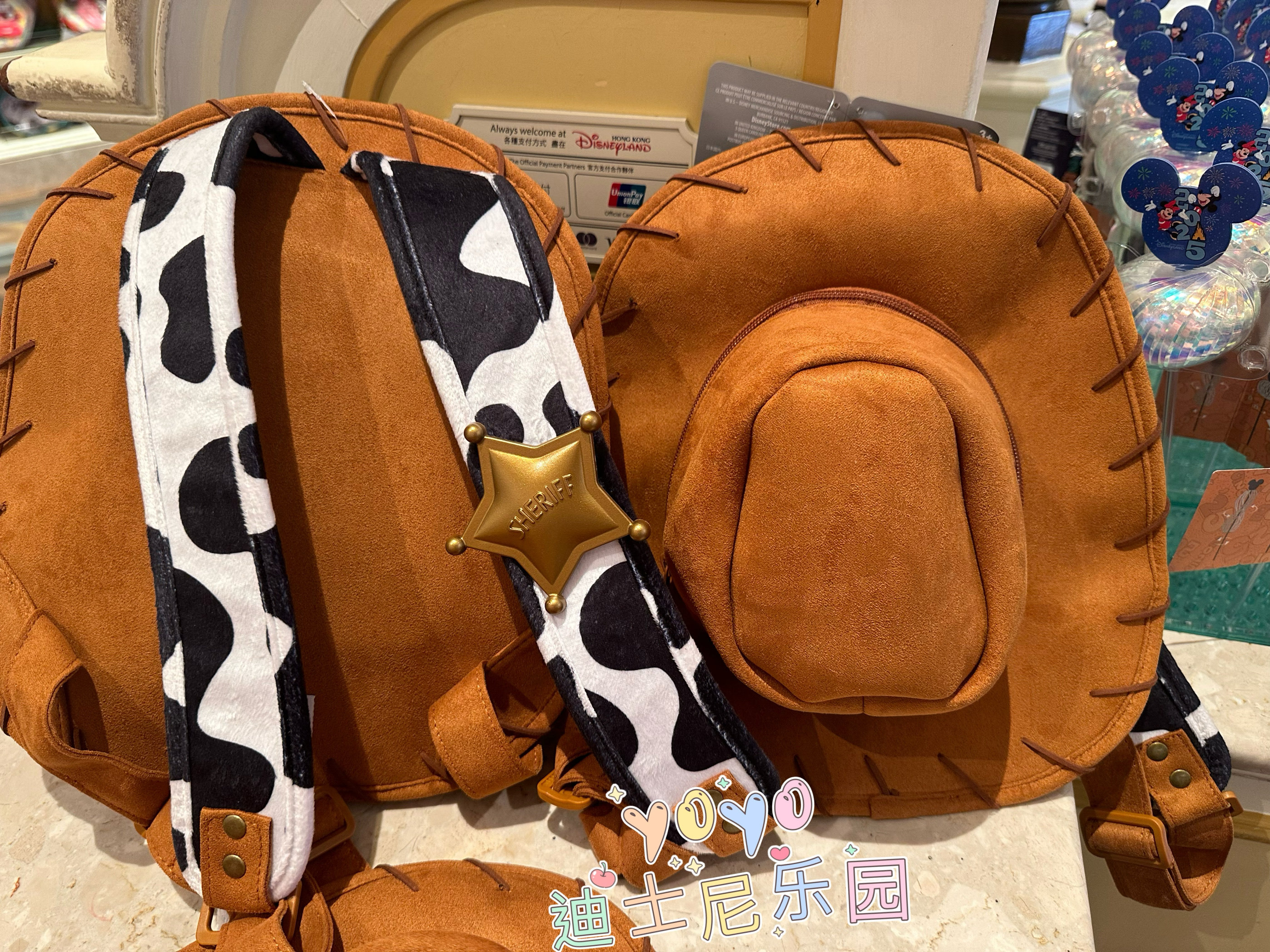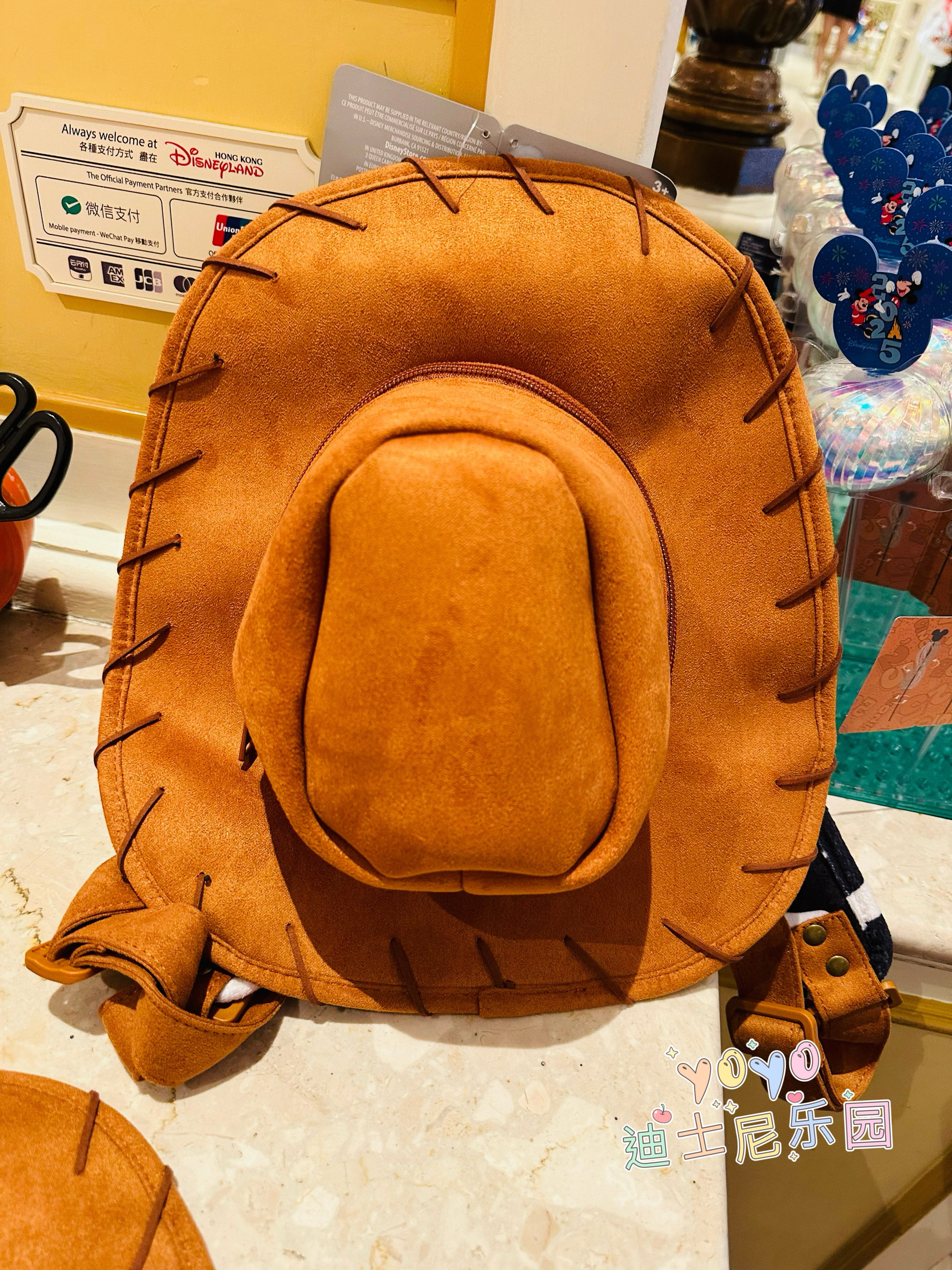 香港迪士尼 玩具总动员 胡迪帽子造型双肩包书包游园装扮卡通背包