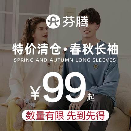 【清仓福利99元】芬腾春秋季长袖情侣睡衣女秋冬男纯棉舒适家居服