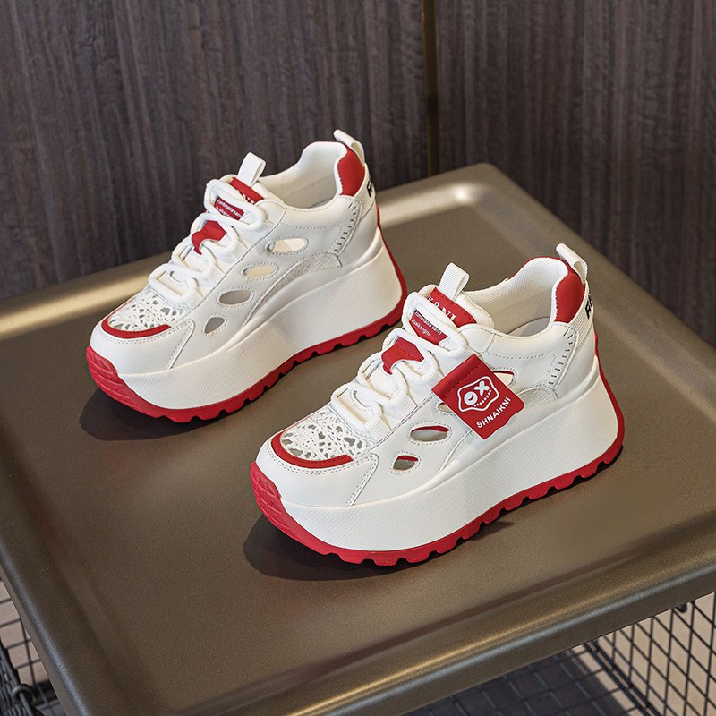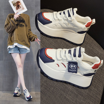 真皮内增高小白鞋2025新款小个子7cm增高鞋时尚休闲轻便厚底鞋女