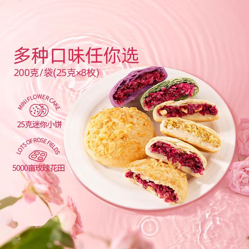 潘祥记玫瑰鲜花饼200g(25g*8)云南特产休闲糕点茉莉抹茶坚果紫薯