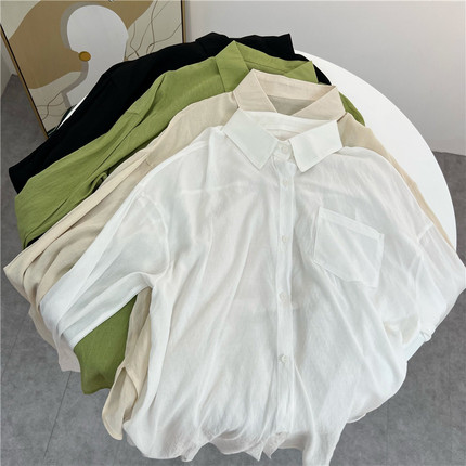 设计感绿色防晒衬衣女2025夏季薄款天丝棉宽松微透白色长袖衬衫