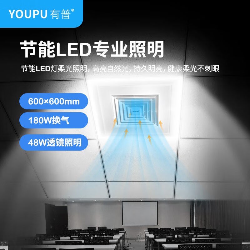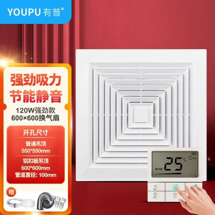 有普600*600集成吊顶换气扇会议室排风扇商用排气扇大功率管道抽