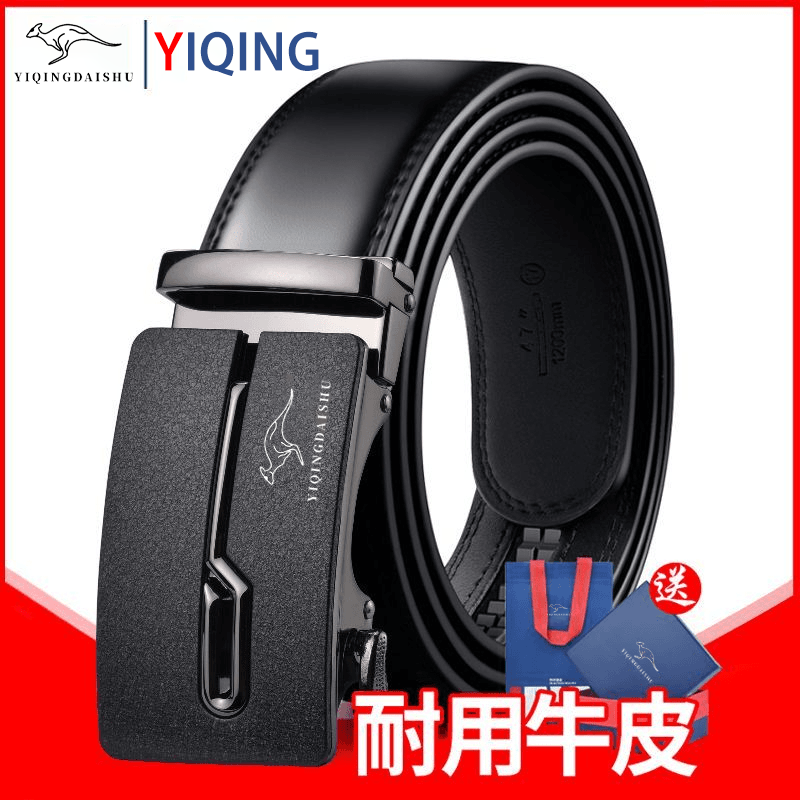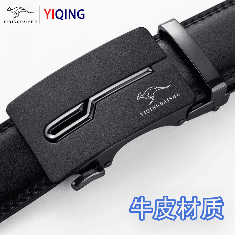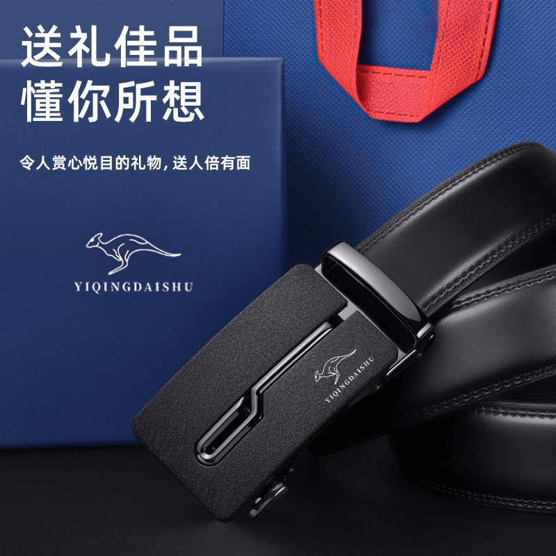 艺情袋鼠皮带男士自动扣真皮商务百搭新款正品腰带中青年牛皮裤带