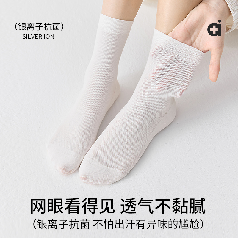 aicare抗菌防臭袜子女春夏季薄款中筒袜女士抑菌吸汗网眼透气棉袜