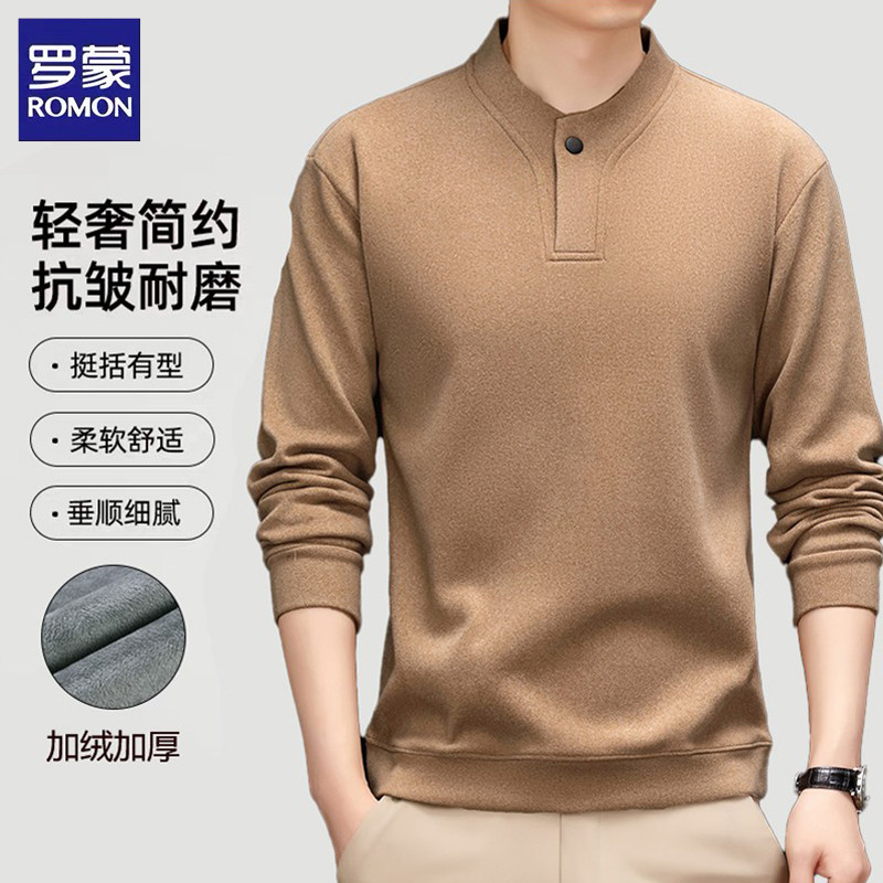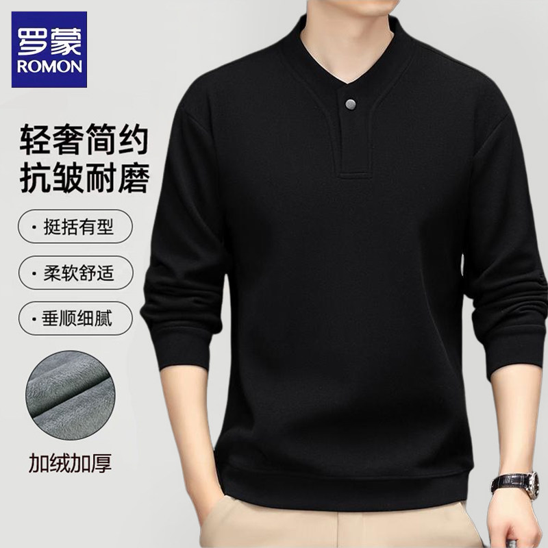 罗蒙男士加绒卫衣长袖T恤男冬季双面绒加厚保暖半高领上衣打底衫