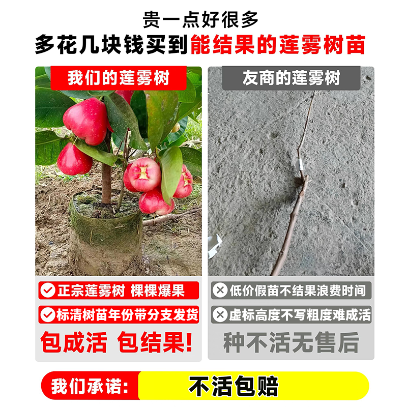 黑金刚莲雾树苗台湾嫁接四季黑糖芭比新品种南方果树庭院地栽带枝