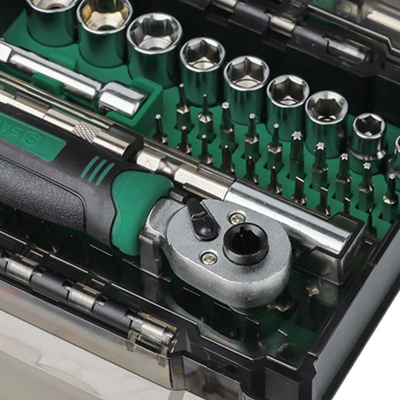 世达套筒套装6.3mm全套工具小飞棘轮扳手套筒批头综合组套05498A