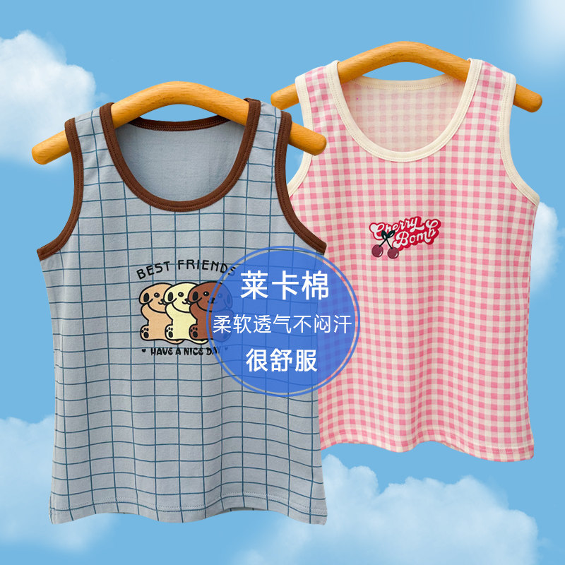 儿童背心男童夏季薄款莱卡棉女童无袖t恤小孩学生纯棉打底衫上衣