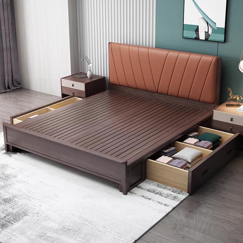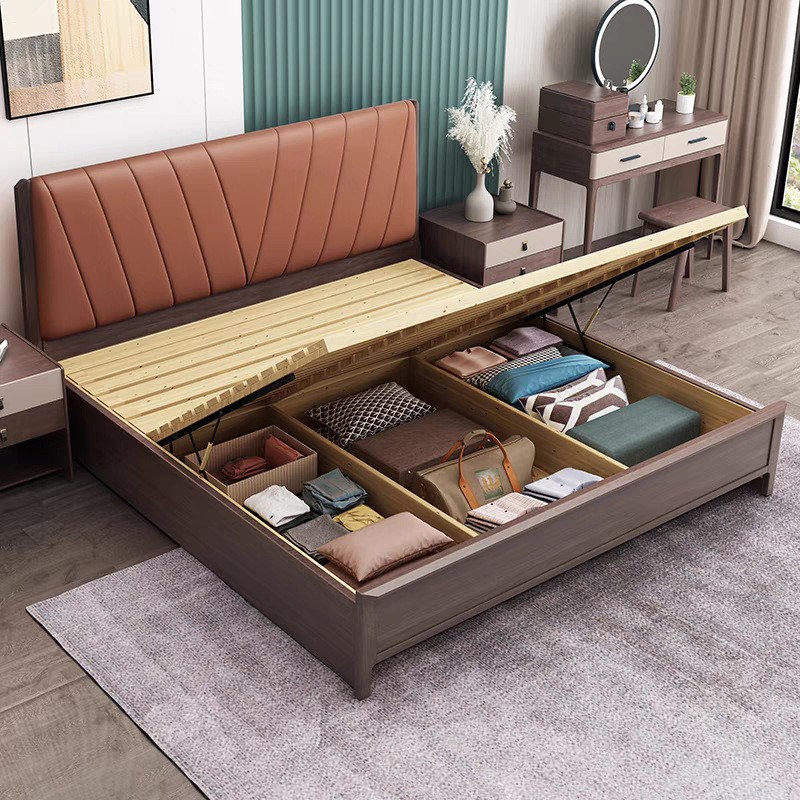 轻奢北欧实木床主卧室现代简约双人1.8米1.5m皮软靠背气压高箱床