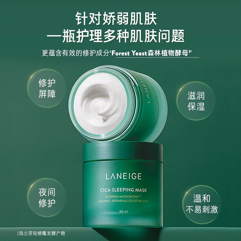 兰芝夜间舒缓修护睡眠面膜60ml保湿温和积雪草涂抹免洗式官方正品