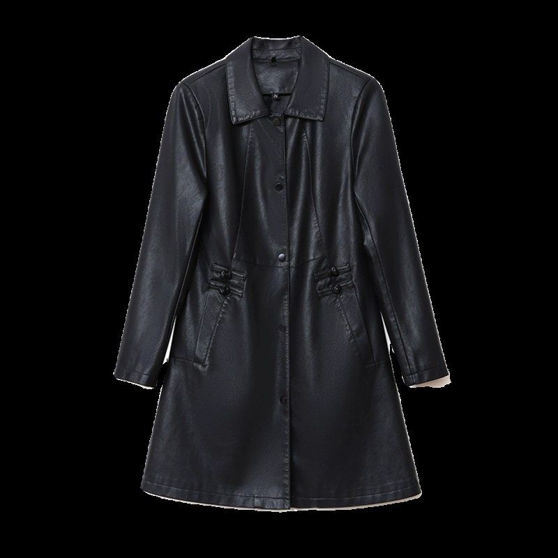 皮衣女中长款修身显瘦中年妈妈春装外套洋气高贵皮PU风衣妇女大衣